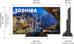 De elegante 40" LED-televisie met smalle rand biedt een helder beeld, natuurgetrouwe kleuren en een modern design dat in elk interieur past. Dankzij de energiezuinige LED-technologie levert hij een laag verbruik en betrouwbare prestaties voor dagelijks vermaak.