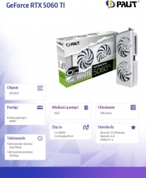 De Palit GeForce RTX 5060 Ti White OC is ontworpen voor gamers en creators die een zuiver witte look willen combineren met efficiënte koeling en stabiele prestaties. Twee 95mm axiale ventilatoren zorgen voor stille werking en betrouwbare warmteafvoer, terwijl het 2-slot ontwerp de installatie in compactere pc-behuizingen vergemakkelijkt.