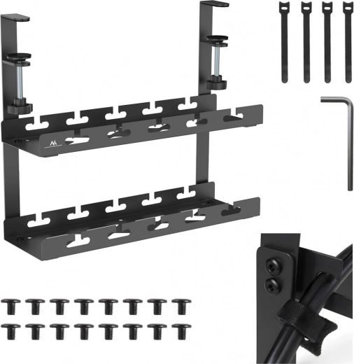 Houd het netjes onder je bureau met deze organizer met twee niveaus, die tot twee stekkerdozen of een combinatie van voedingen, netwerkapparatuur en accessoires kan herbergen. De lengte van 40 cm biedt voldoende ruimte voor uitgebreide bekabeling, terwijl sleuven en doorvoeren het traceren en bundelen van kabels vergemakkelijken.