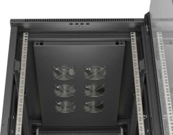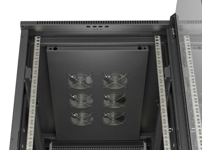 De bovenste ventilatiezone met optie voor installatie van ventilatoren zorgt voor een vlotte warmteafvoer en optimale luchtstroom voor servers en netwerkcomponenten.
