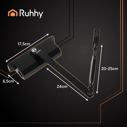 De betrouwbare en duurzame RUHHY-deurdranger is ideaal voor zowel binnen- als buitengebruik. Dankzij de stabiele constructie, weerstand tegen weersinvloeden en de mogelijkheid tot montage op rechts- of linksdraaiende deuren biedt hij langdurige, probleemloze werking. De dubbele regeling maakt het mogelijk zowel de sluitsnelheid (150°–20°) als de eindsnelheid (20°–0°) in te stellen voor maximaal comfort en veiligheid.