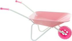 Veiligheid staat voorop – de kruiwagen heeft afgeronde hoeken om verwondingen te voorkomen. Dankzij de praktische afmetingen leren kinderen er gemakkelijk mee omgaan en helpen ze in de tuin of bij het vervoeren van speelgoed en klein materiaal.