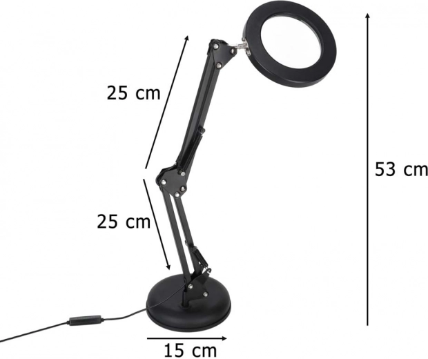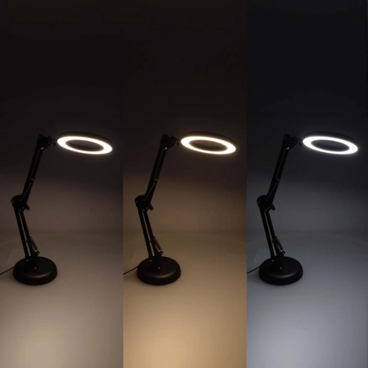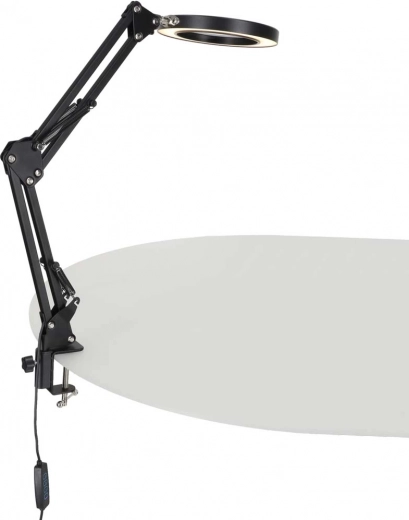 Deze elegante zwarte LED-lamp combineert verlichting met een 3x loep in één, ideaal voor modelbouw, naaien, elektronica, ambachtelijk werk en het lezen van kleine lettertjes. De ringvormige LED-krans zorgt voor gelijkmatig, niet-verblindend licht met natuurgetrouwe kleurweergave (CRI > 80), zodat details scherp en comfortabel zichtbaar zijn.