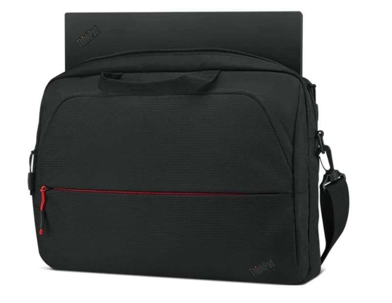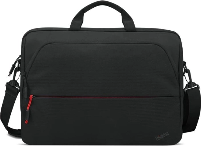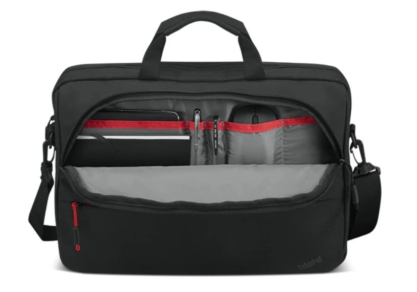 De praktische en slanke ThinkPad Essential Slim Topload Eco tas combineert apparaatbescherming, overzichtelijke organisatie en draagcomfort. Het gevoerde hoofdvak biedt veilige ruimte aan een laptop met een schermdiagonaal van 13–14″ en extra vakken houden alle accessoires op hun plek.