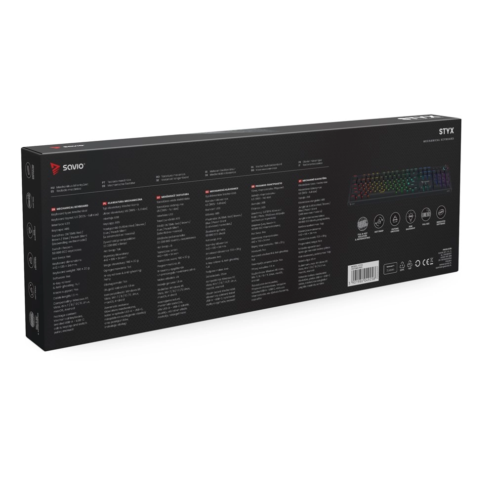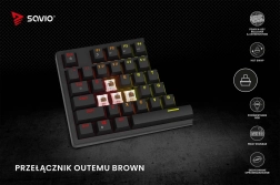 Savio Styx combineert een duurzame constructie, betrouwbare prestaties en moderne functies in een volwaardig lay-out met numeriek blok. De tactiele OUTEMU BROWN-switches bieden een gebalanceerde weerstand, een subtiel voelbaar drukpunt en een stillere aanslag – ideaal voor gamen en langdurig typen. Dankzij de hot-swap-voetjes pas je het toetsenbord eenvoudig aan je voorkeuren aan zonder te solderen.