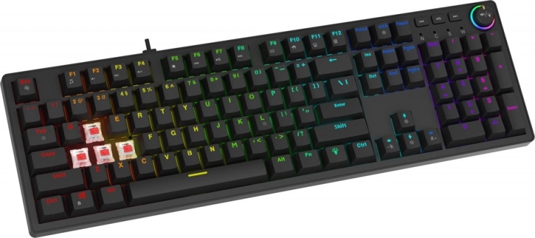 Het full-size formaat met numeriek deel en multimediatoetsen biedt maximale functionaliteit voor werk en ontspanning. Het praktische multifunctionele wieltje vereenvoudigt snelle aanpassing van volume en helderheid van de verlichting zonder ingewikkelde sneltoetsen. Duurzame ABS-keycaps, een gevlochten USB-A/USB-C-kabel en meegeleverde tools voor het wisselen van keycaps en switches maken de doordachte uitrusting compleet.