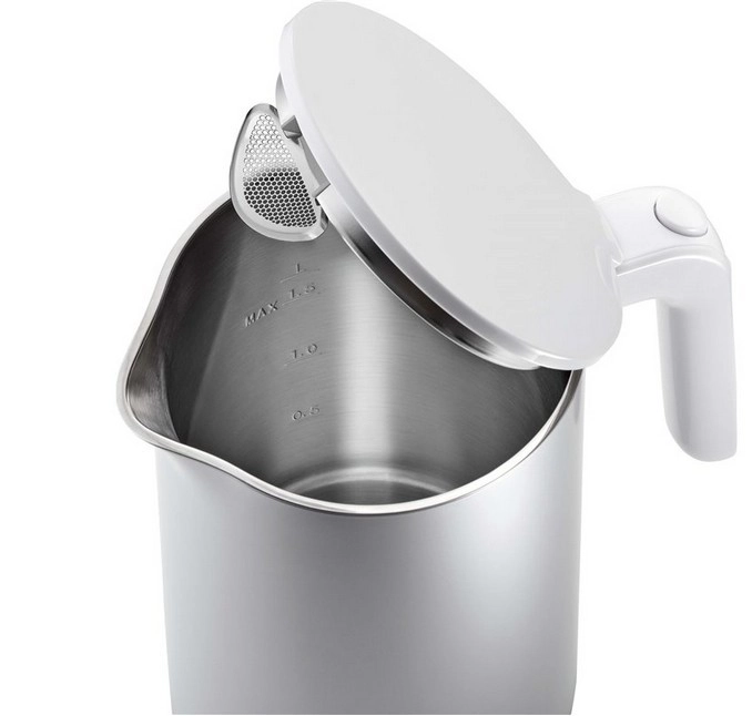Doordachte details, zoals het deksel dat tot 70° opent voor veilig vullen, het geïntegreerde roestvrijstalen antikalkfilter voor een zuiverdere smaak en de automatische uitschakeling met oververhittingsbeveiliging, maken van deze waterkoker een betrouwbare dagelijkse helper. De discrete kabelhaspel maakt opbergen op het aanrecht nog makkelijker.