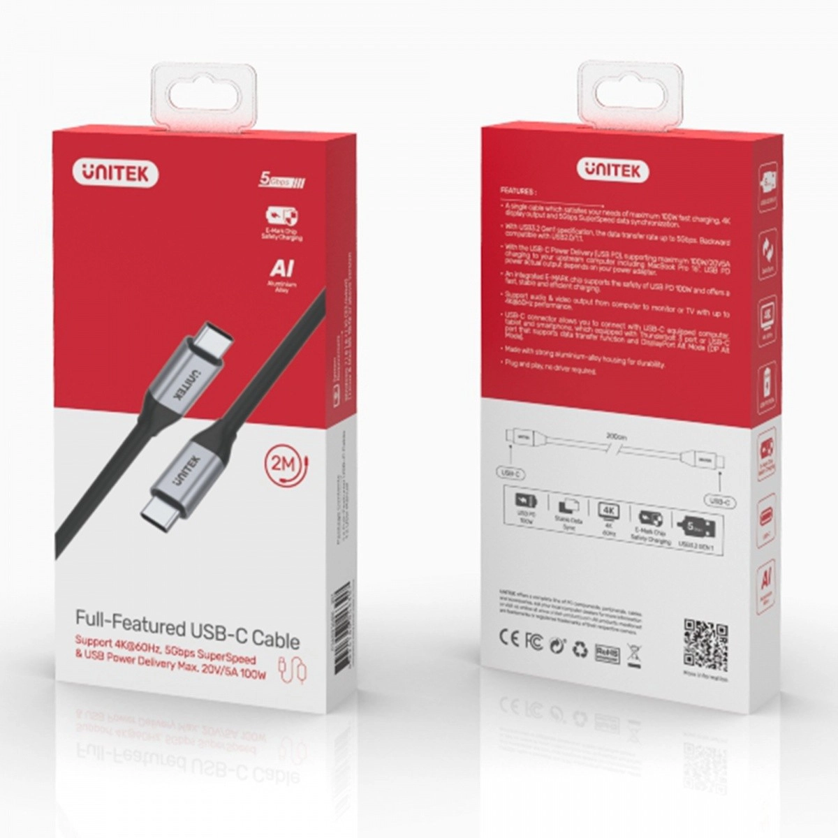 Stevige aluminium uiteinden en een geïntegreerde E‑MARK‑chip kiezen automatisch veilige stroomparameters, zodat laden en synchroniseren snel en betrouwbaar zijn. De lengte van 2 m biedt comfortabel bereik thuis, op kantoor en onderweg – van het aansluiten van een laptop op een 4K‑monitor tot het verbinden van een telefoon met een tv.