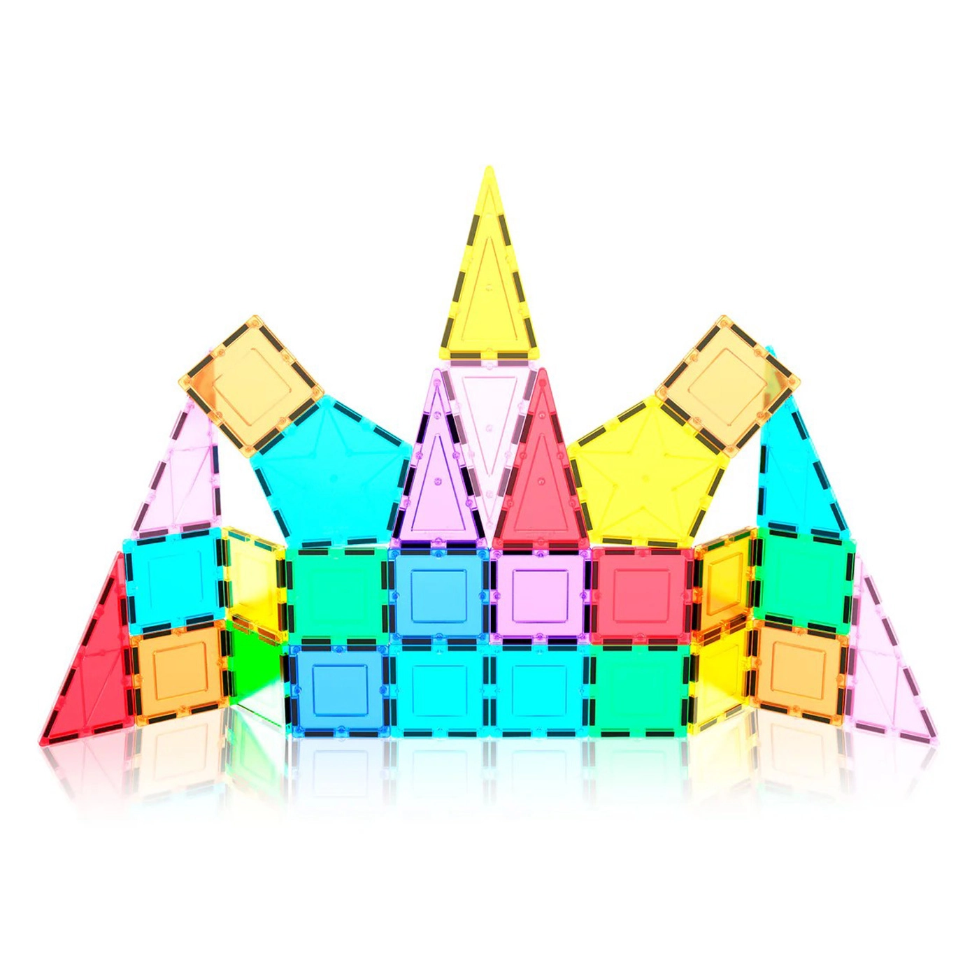 Deze kleurrijke set magnetische tegels is ideaal voor jonge bouwers. Dankzij de magnetische randen klikken de onderdelen soepel aan elkaar, zodat kinderen snel stabiele 3D-modellen maken – van een raket tot eigen fantasiebouwwerken. Transparante kleuren en geometrische vormen nodigen uit tot experimenteren en ontwikkelen fijne motoriek en logisch denken.