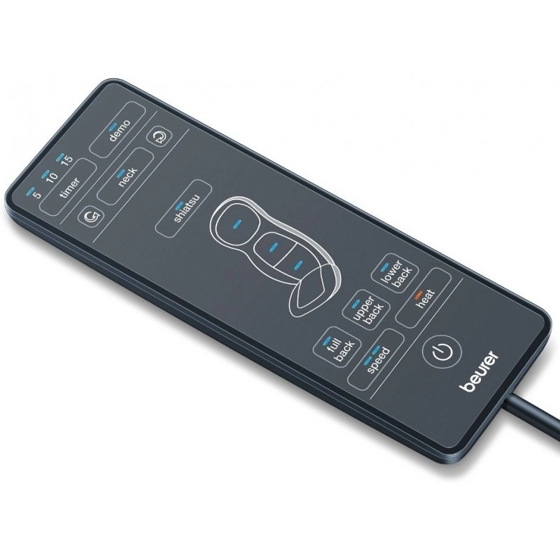 Je past de massage eenvoudig aan: kies gehele rug, alleen bovenrug, onderrug of een aparte nekmassage. Dankzij 2 snelheden schakel je tussen zachte relaxatie en een intensievere massage. De intuïtieve afstandsbediening met duidelijke zone-iconen maakt de bediening eenvoudig. Een timer met automatische uitschakeling verhoogt zowel de veiligheid als het comfort.