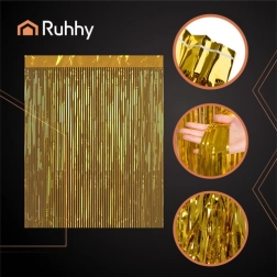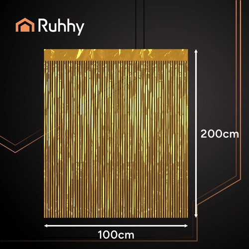 Het lichte gordijn van glanzende PET-folie beweegt zachtjes bij elke luchtstroom en creëert een boeiend spel van licht en beweging. Perfect als achtergrond voor foto’s, als entree-decoratie of voor het versieren van podia en etalages. Minimalistische installatie – losmaken, aandrukken en klaar.
