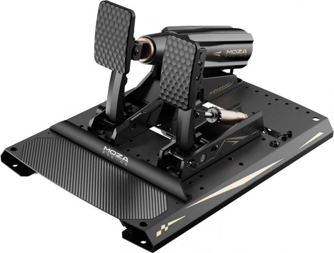 De CRP2-set met het actieve MOZA mBooster-pedaal levert toonaangevende nauwkeurigheid, consistentie en realistische feedback. De rem met load‑cell tot 200 kg en 15‑bit hoeksensor zorgt voor fijn gedoseerde remkracht, terwijl de actieve mBooster het gedrag van gas, rem en koppeling simuleert met een soepele, stille mechaniek. De constructie van luchtvaart-aluminiumlegering, hoogsterktestaal en 3K carbon garandeert stabiliteit en een lange levensduur.