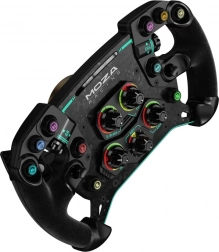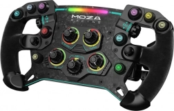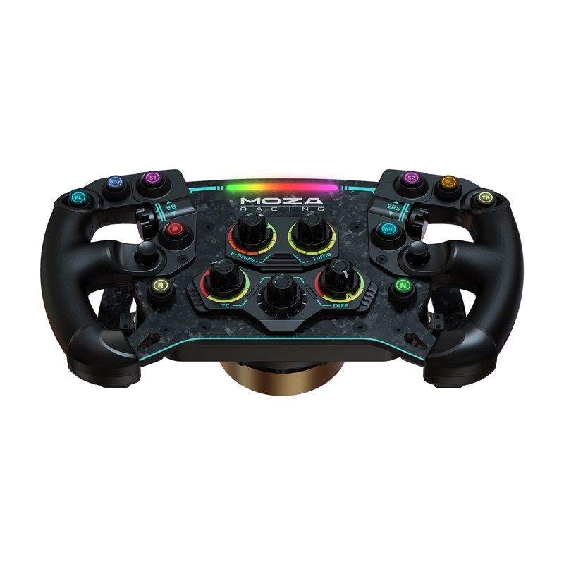 Voor maximale controle heb je 8 RGB-knoppen, achteraan 2 programmeerbare knoppen, 3 draaiencoders, 2 wieltjes, een 7-weg schakelaar en een joystick. Tien LED-toerentellerindicatoren met 16,7 mln. kleuren zijn instelbaar in MOZA Pit House, net als de volledige display-UI. De aluminium quick-release maakt razendsnelle velgwissels mogelijk, draadloze én bekabelde aansluiting garandeert volledige compatibiliteit met MOZA-bases en dankzij de universele adapter ook ondersteuning voor derde partijen.
