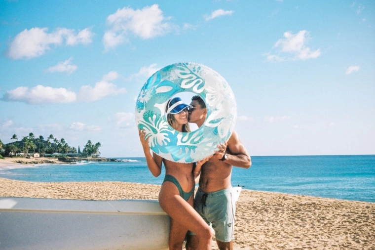 De opvallende Hawaïaanse bloemenprint geeft je zomer kleur en past perfect bij zowel zwembad als strand.
