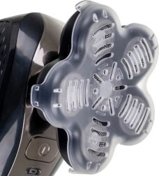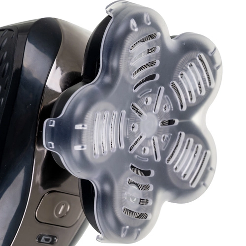 Het meerkoppige systeem past zich aan de contouren van gezicht en hoofd aan, verkort de scheertijd tot een minimum en laat de huid glad achter zonder trekken.