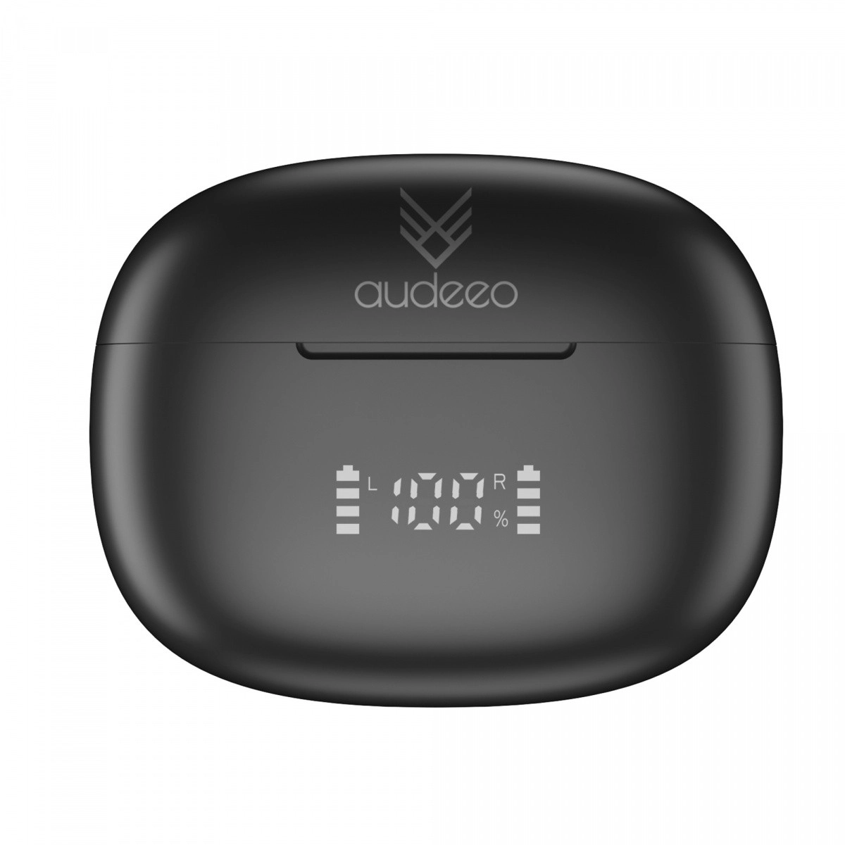 AUDEEO Navigator biedt een stabiele draadloze verbinding met Bluetooth 5.3 voor soepele weergave zonder onderbrekingen. Het compacte oplaaddoosje met digitaal LED-display toont duidelijk de batterijstaten van beide oortjes, zodat je de energie altijd onder controle hebt.