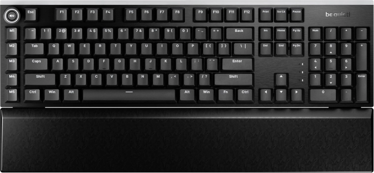 Voor bediening van media en gameprofielen heb je een aluminium 3D‑wiel en 5 programmeerbare toetsen voor macro’s of multimedia. De duurzame behuizing van geborsteld aluminium, PBT double‑shot keycaps en de ergonomische, magnetische polssteun met verstelbare toetsengreep zorgen voor een lange levensduur en comfort bij dagelijks gebruik. Alles stel je in via het intuïtieve be quiet! IO Center – van keymapping tot lichteffecten en profielen.