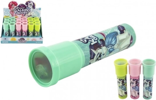 De caleidoscoop is een tijdloos stuk speelgoed dat, wanneer je tegen het licht inkijkt, met behulp van spiegels en gekleurde deeltjes unieke en steeds veranderende patronen creëert. Het eenhoornmotief zal alle kleine dromers en liefhebbers van magische werelden blij maken.