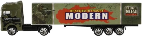 Ontdek een gedetailleerd uitgewerkte vrachtwagen met oplegger die in geen enkele autocollectie mag ontbreken. De metalen cabine geeft het model een realistische look en extra duurzaamheid, terwijl kunststof details het lage gewicht behouden voor eenvoudige hantering. Dankzij de vrijloop is een lichte duw voldoende en rijdt de vrachtwagen soepel weg.