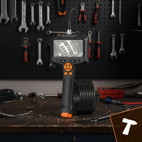 Dankzij de draadloze werking met een 2000 mAh-accu (tot 3,5 uur werken) en laden via USB‑C is het apparaat altijd en overal klaar voor gebruik. De IP67-afdichting beschermt de sonde bij werkzaamheden in veeleisende omstandigheden. In de verpakking zitten drie praktische opzetstukken – een magneet en haak voor het uitnemen van metalen of kleine voorwerpen en een spiegeltje voor zicht onder verschillende hoeken.