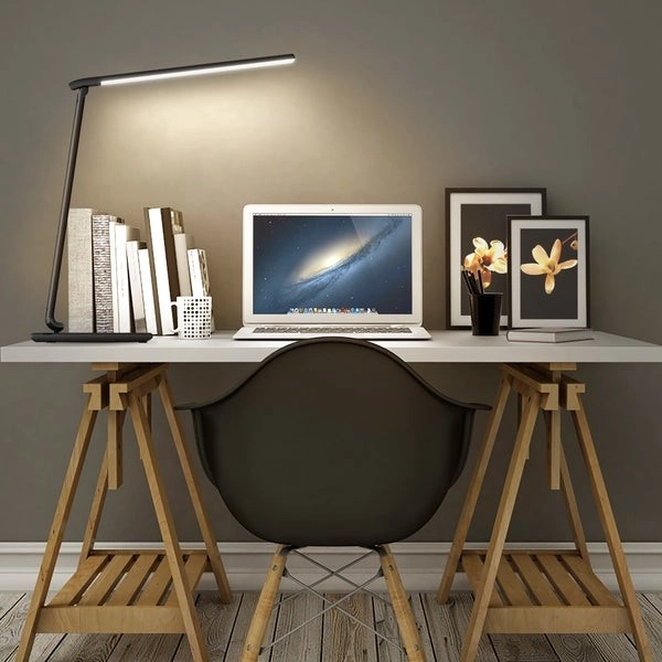 Deze veelzijdige LED-lamp verspreidt het licht gelijkmatig, minimaliseert schittering en beschermt je ogen op een prettige manier. Met het intuïtieve touchpaneel schakel je eenvoudig tussen 5 vooraf ingestelde modi (van warm tot koel wit) en kies je traploos uit 7 helderheidsniveaus voor elke activiteit – van gefocust werken tot ontspannen avondverlichting.