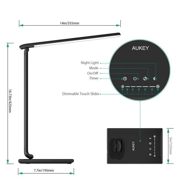 Praktische uitrusting omvat een USB-poort voor het opladen van je telefoon of hoofdtelefoon, een 1-uurs auto-off timer voor energiebesparing en een nachtmodus om de lamp in het donker gemakkelijk terug te vinden. De verstelbare constructie met draaibare voet en kop maakt precieze lichtgeleiding zonder schaduwen mogelijk.