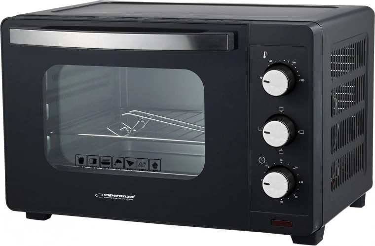 De mini-oven ESPERANZA PROSCIUTTO levert betrouwbare prestaties in een compact lichaam. Met een inhoud van 20 liter bereid je eenvoudig pizza, ovenschotels of broodjes. Het vermogen van 1280 W zorgt voor snelle opwarming en gelijkmatig bakken, terwijl het dubbele geharde glas in de deur de thermische isolatie en veiligheid verbetert.