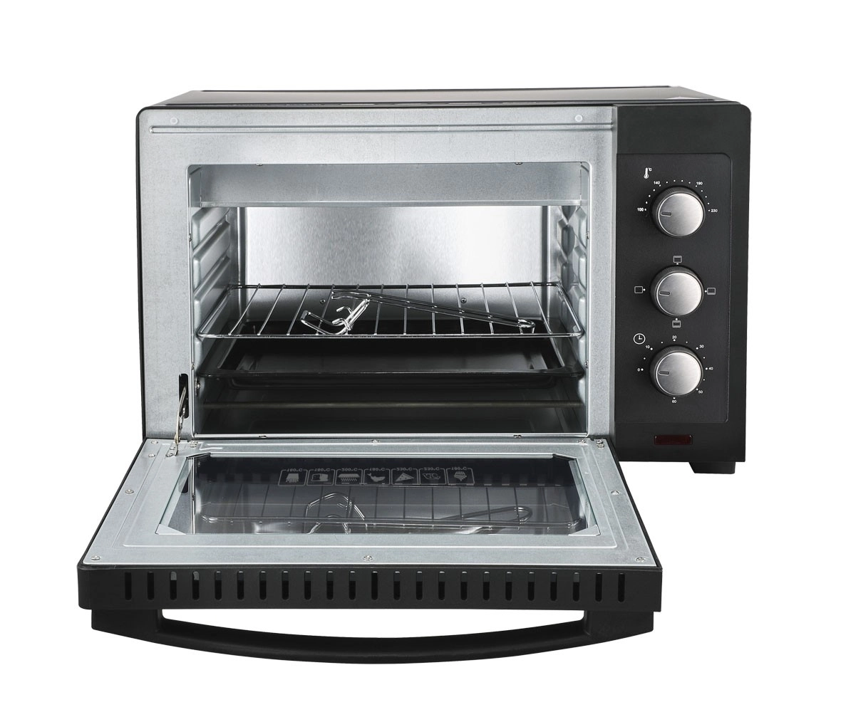 De bediening is eenvoudig en intuïtief: stel de temperatuur in binnen het bereik van 100–230 °C, kies een van de 3 bakfuncties en start de timer tot 60 minuten met geluidssignaal. De constructie met een grotere ruimte tussen de behuizing en de binnenkamer ondersteunt een efficiëntere warmteafvoer en stabiliteit tijdens gebruik.