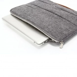 De slimme binnen- en buitenindeling biedt een hoofdvak voor de laptop, verborgen ritsvakken voor oplader of muis en een kleiner open vak voor kleine spullen. Dankzij het slanke profiel past de hoes gemakkelijk in een rugzak of grotere tas, en het comfortabele handvat zorgt voor een zekere grip tijdens het dragen.