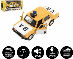 Het realistische model van de VB Lada politiewagen combineert metaal en kunststof voor extra duurzaamheid en een lange levensduur. Dankzij de terugtrekfunctie rijdt de auto weg zodra je hem loslaat, terwijl licht- en geluidseffecten de speelervaring versterken. De te openen voordeuren zorgen voor extra authenticiteit en stimuleren creatief spel.