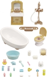 Geef het SYLVANIAN FAMILIES-huis een knusse sfeer met een complete badkamer set in rustieke stijl. De set bevat een bad, een wastafel met spiegel en kastje, een douche en een toilet, aangevuld met praktisch accessoires (wasmand, zeep, flesjes, borstels). Ideaal voor creatief spel en het ontwikkelen van de verbeelding. Figuren niet inbegrepen.