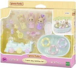 Ontdek een wereld vol lieve verhalen met de set Bad voor drieling van Sylvanian Families. Drie konijnenbaby’s uit de “biscuit”-konijnenfamilie gaan op wateravontuur met een badtreintje, een badkuipje op wieltjes en andere badspeeltjes. Realistische details en het prettige materiaal van de figuren zorgen voor een authentieke en veilige speelervaring.
