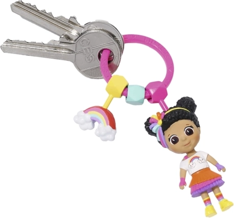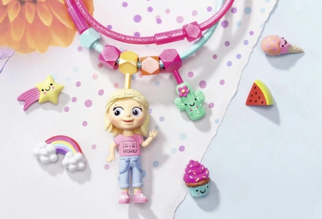 Van de poppen maak je eenvoudig een armband, ketting of hanger voor je sleutels en rugzak. Gekleurde koordjes, een ring en connectors maken van spelen een modieuze accessoire.