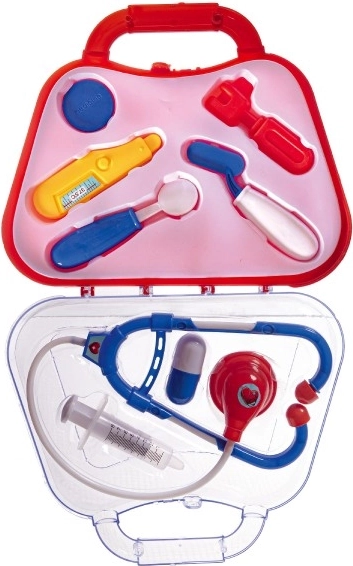 Met deze doktersset kruipen kinderen moeiteloos in de rol van kleine artsen. Alle noodzakelijke instrumenten zijn opgeborgen in een stevige kunststof koffer met handvat, die gemakkelijk te dragen is en helpt orde te bewaren. Rollenspellen stimuleren communicatie, samenwerking en de fijne motoriek.