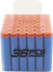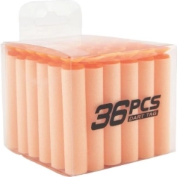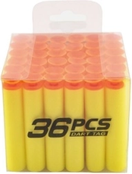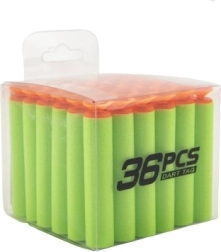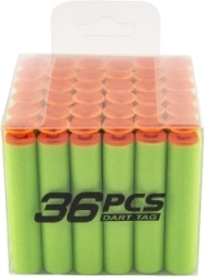 Deze universele set bevat 36 foam pijltjes met zuignap in vier opvallende kleuren. De zachte foam zorgt voor veilig speelplezier binnen en buiten, de zuignappunten hechten eenvoudig op gladde oppervlakken en het doosje met handvat maakt dragen en opbergen gemakkelijk.
