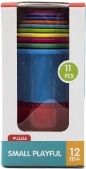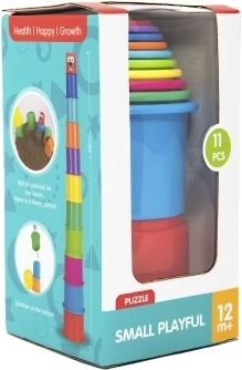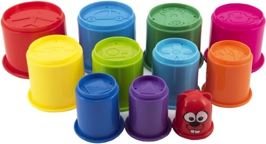 De set van kleurrijke stapelbekers bevat 11 onderdelen die gebruikt kunnen worden om een hoge toren te bouwen. De bekers zijn in verschillende kleuren en kunnen in elkaar gestapeld worden, wat een geweldige manier is om de fijne motoriek van uw kind te ontwikkelen.