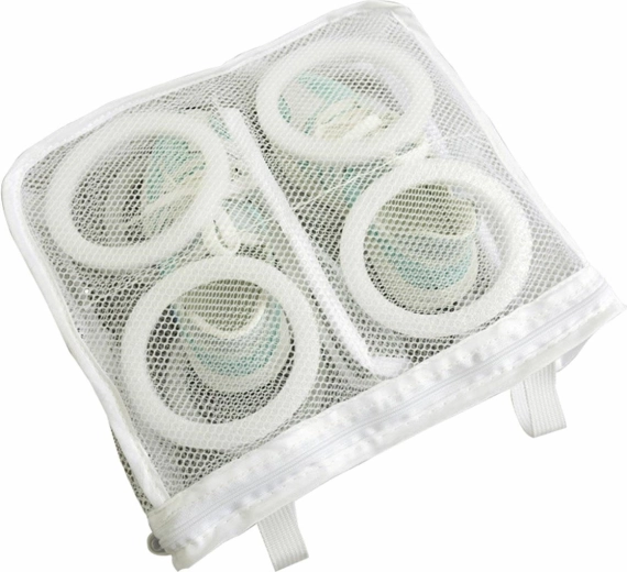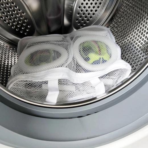 Praktische waszak van netstof voor het wassen van schoenen. Beschermt de schoenen perfect tegen beschadiging in de wasmachine. Voorzien van een ritssluiting en praktische lusjes waarmee je de schoenen kunt ophangen tot ze droog zijn.