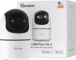 Geniet van heldere en vloeiende bewaking in huis met de Sonoff CAM-PT2. Hij biedt Full HD 1080p-resolutie (diafragma F2.0) en brede opnames dankzij 360° panoramische dekking – 340° horizontale en 180° verticale rotatie zonder blinde vlekken. Het 940 nm nachtzicht is discreet (onzichtbaar voor het oog) en je kunt bovendien overschakelen naar kleurennachtmodus.