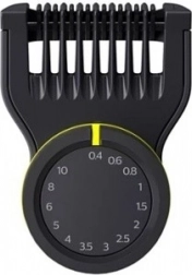 De draaibare kam met draaiknop zorgt voor kleine stappen en exacte controle over de trimlengte voor stoppelbaard, baard en lichaam.