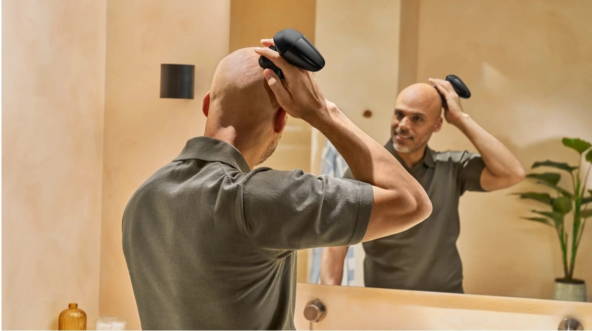 Bereik een perfect glad geschoren hoofd met minimale inspanning. De volledig flexibele scheerkop draait 360° en volgt de contouren, zodat hij constant huidcontact houdt, zelfs op lastig bereikbare plekken. Het ComfortCut-systeem met 36 zelfslijpende mesjes snijdt haren net boven huidniveau voor een gelijkmatig en zacht resultaat zonder onnodige druk.