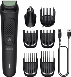 Ontdek een betrouwbare trimmer voor complete verzorging van baard en haar. Dankzij 7 praktische opzetstukken vorm je eenvoudig contouren, kort je lengtes in en werk je details af met maximale precisie. Zelfslijpende stalen messen blijven langdurig scherp, terwijl afgeronde puntjes zacht zijn voor de huid.