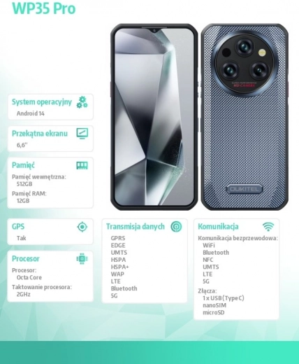Zoek je een telefoon die ruw gebruik en lange trips zonder oplader aankan? De OUKITEL WP35 Pro 5G combineert een enorme 11.000 mAh batterij met een van de dunste robuuste behuizingen in zijn klasse (15,2 mm). Dankzij het 6,6" FHD+ Gorilla Glass 5 display krijg je een scherp beeld en krasbestendigheid, terwijl 5G en de MediaTek Dimensity 6300 (8 cores, 2,2 GHz) chipset zorgen voor vloeiende prestaties.