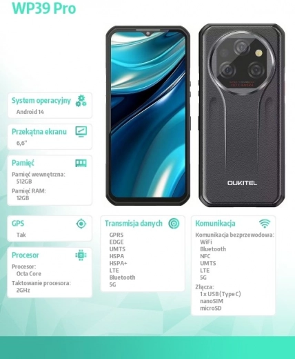 Zoek je een telefoon die zware omstandigheden doorstaat zonder concessies aan prestaties? De OUKITEL WP39 Pro 5G combineert extreme duurzaamheid met de vloeiende werking van Android 14, snelle 5G‑connectiviteit en een lange accuduur. Het 6,6" FHD+‑display wordt beschermd door Corning Gorilla Glass 5, zodat je je ook in het veld geen zorgen hoeft te maken over krassen.