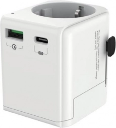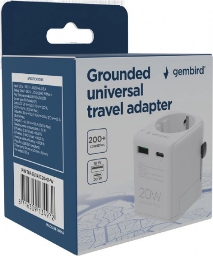 Deze universele reisadapter met aarding sluit je elektronica veilig aan vrijwel overal ter wereld. Dankzij GaN‑technologie is hij kleiner, koeler en efficiënter, terwijl de geïntegreerde poorten USB‑C PD 20 W en USB‑A QC 3.0 18 W je telefoon, oordopjes of een kleine tablet snel opladen. Het EU‑Schuko stopcontact ondersteunt de meeste Europese netsnoerstekkers.