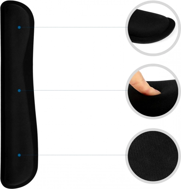 De steun van traagschuim is zeer aangenaam in gebruik. Het schuim past zich aan je pols aan, waardoor zelfs langdurig computergebruik geen pijn in polsen en handen veroorzaakt. Bovendien is hij ruim genoeg om over de volledige lengte van het toetsenbord met beide handen te gebruiken. Typ ergonomisch!