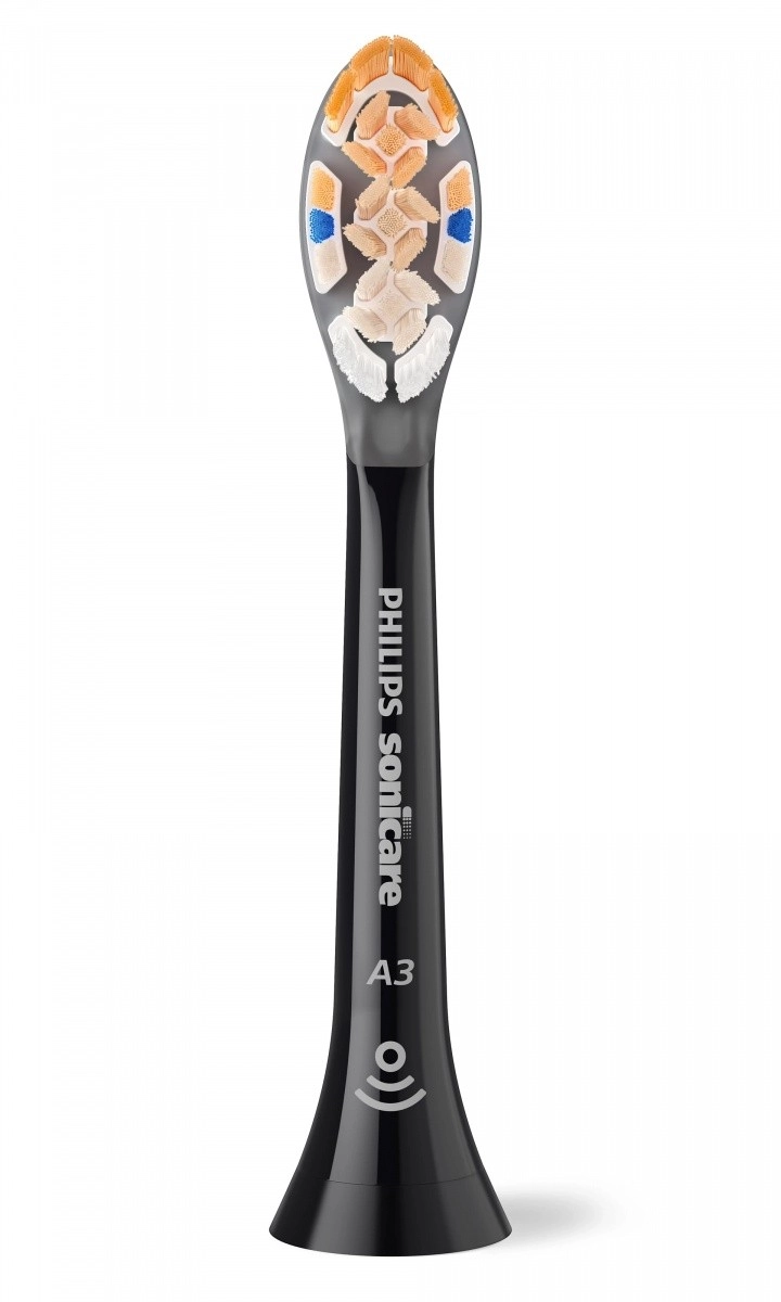 De Sonicare A3 All‑in‑One opzetborstels combineren geavanceerde sonische technologie met een doordachte vezelvorm voor dieptereiniging, ook op moeilijk bereikbare plaatsen. Driehoekige en meerkleurige zones vergroten het contactoppervlak en verwijderen verkleuringen en aanslag effectiever, terwijl extra lange zijharen zorgen voor verzorging van de tandvleesrand.