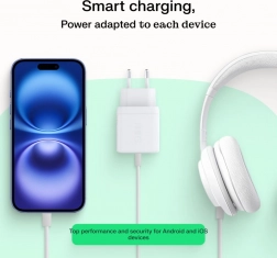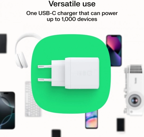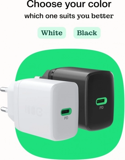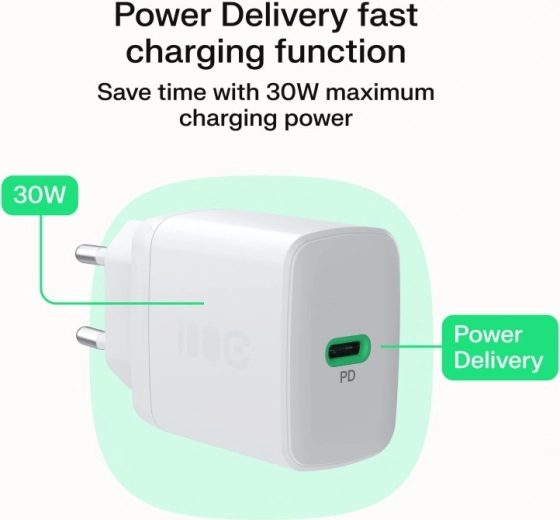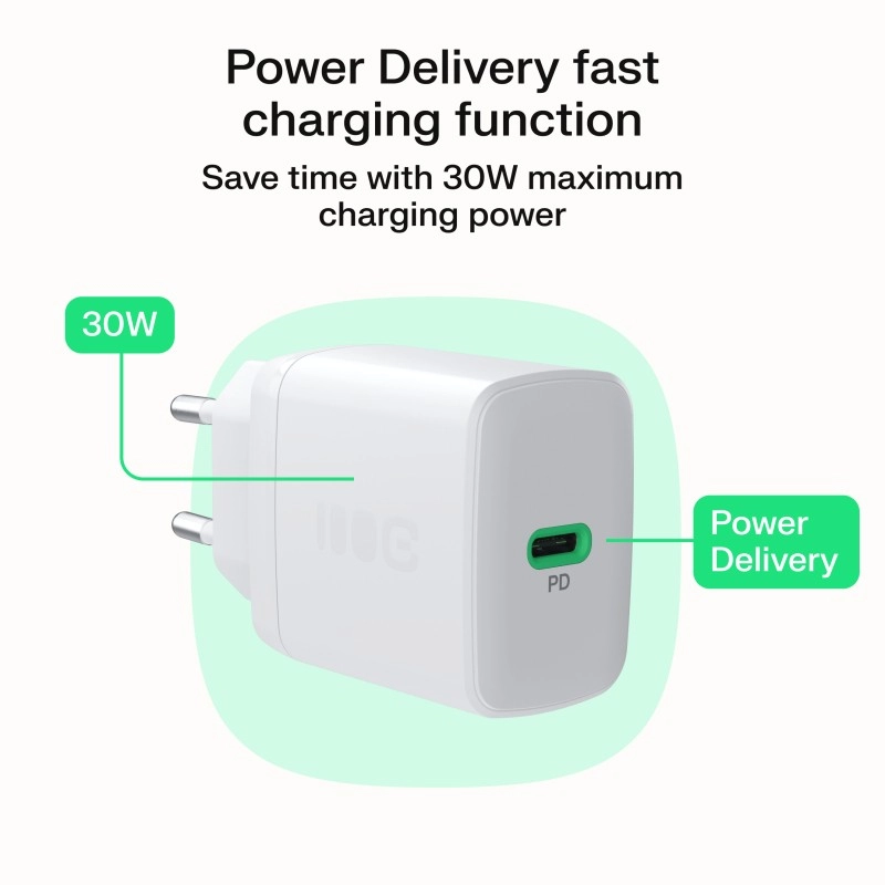 Profiteer van snel opladen met USB‑C Power Delivery 30 W en laad je telefoon tot 80% in ongeveer 40 minuten. De enkele USB‑C-poort voedt een breed scala aan moderne apparaten, waaronder Apple iPhone, Samsung Galaxy en Google Pixel, evenals draadloze oordopjes. De compacte behuizing met afgeronde randen past perfect in het stopcontact, thuis en op reis.