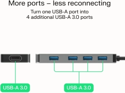 - Meer poorten, minder wisselen: maak van één USB-A vier USB-A 3.0-poorten.