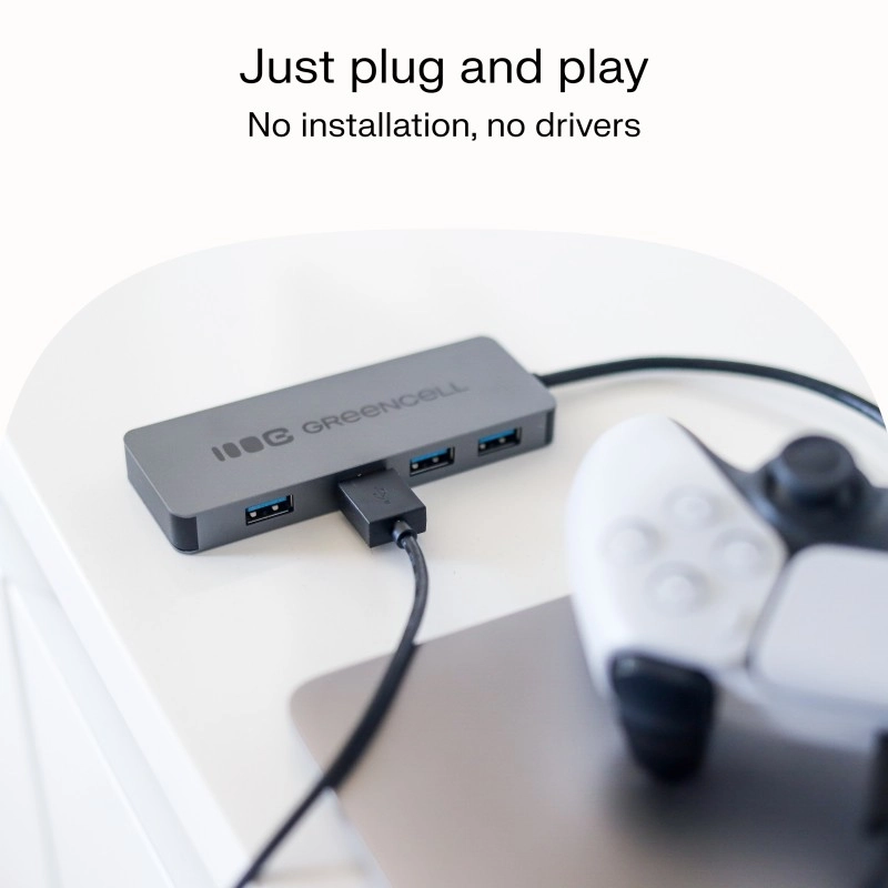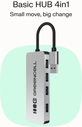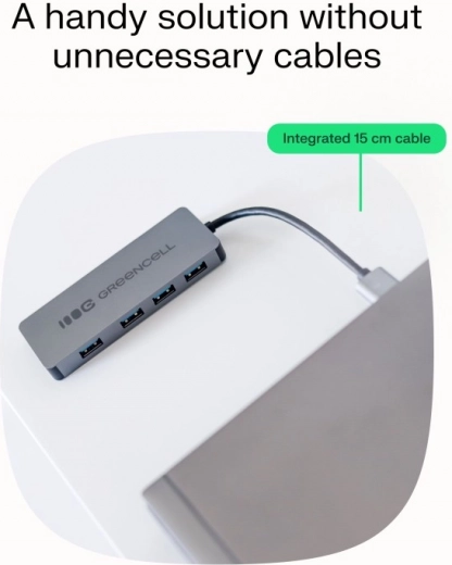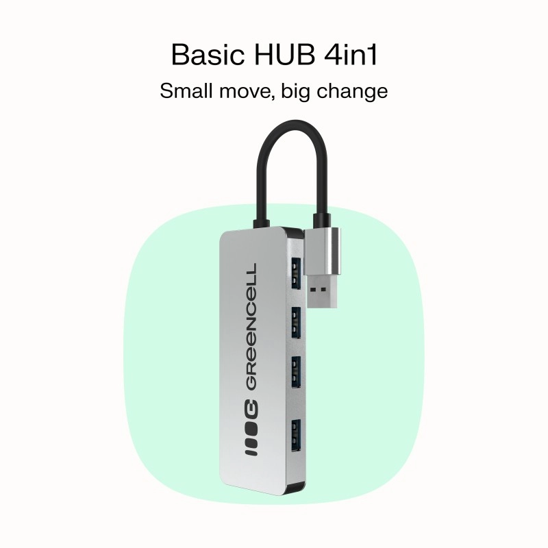 Breid één USB-A-poort uit naar vier en krijg meer aansluitmogelijkheden zonder steeds te hoeven wisselen. De GREENCELL Basic HUB biedt 4× USB 3.0, snelle gegevensoverdracht tot 5 Gb/s, een compact ontwerp met een geïntegreerde kabel van 15 cm en een duurzame aluminium behuizing voor dagelijks gebruik.