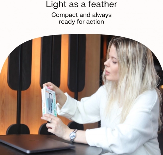 - Mobiel en licht: past gemakkelijk in een zak of vak van uw tas.